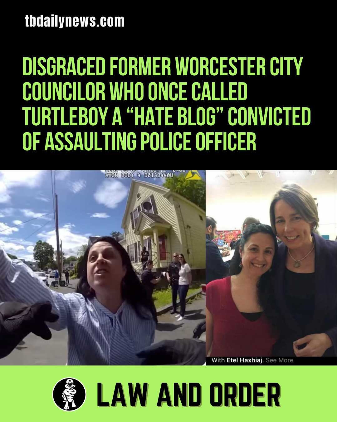 In 2017 Worcester City Councilor Etel Haxhiaj denied a seat on the city zoning board to a woman named Margaret Melican, because Margaret had represented me successfully in several lawsuits and left funny poems on the Turtleboy Facebook page. Yesterday Etel was convicted of assaulting a police officer after she attempted to interfere with a lawful ICE arrest in May. Enjoy your community service, Etel: https://tbdailynews.com/2026/02/12/disgraced-former-worcester-city-councilor-etel-haxhiaj-who-once-called-turtleboy-a-hate-blog-convicted-of-assaulting-worcester-police-officer-during-ice-arrest/